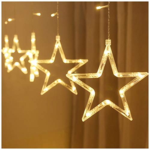 星型装飾LEDライト 2.5m 138LED イルミネーションライト カーテンライ ト LEDストリングライト クリスマス飾り リモコン8 種類の切替モード 電池式 透明蛍光灯 ウォームホワイトの光