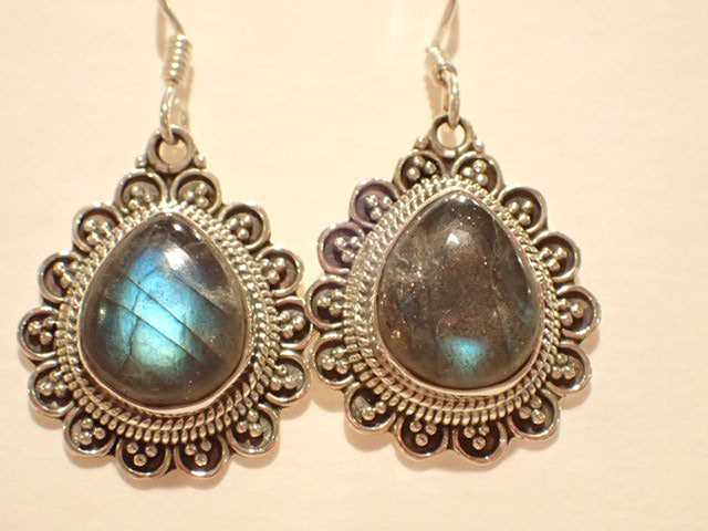 雫形ラブラドライト・花びらのようなデザインシルバー925フックピアス 天然石ジュエリーのお店 シルバー925 ピアス おしゃれ かわいい プレゼントにもおすすめ♪ ハッピーエイト
