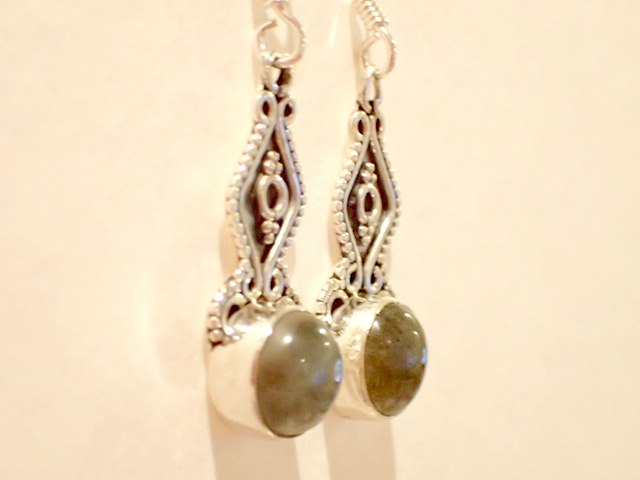 真ん丸ラブラドライトのアラビア調デザインシルバー925フックピアス 天然石ジュエリーのお店 シルバー925 ピアス おしゃれ かわいい プレゼントにもおすすめ♪ ハッピーエイト