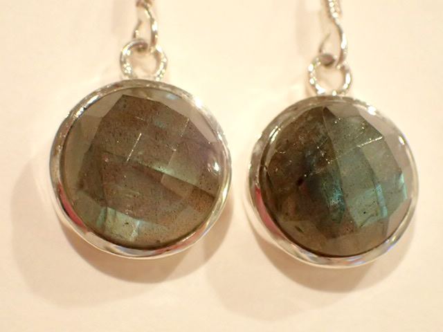 真ん丸ラブラドライトの多面カットデザインシルバー925フックピアス 天然石ジュエリーのお店 シルバー925 ピアス おしゃれ かわいい プレゼントにもおすすめ♪ ハッピーエイト